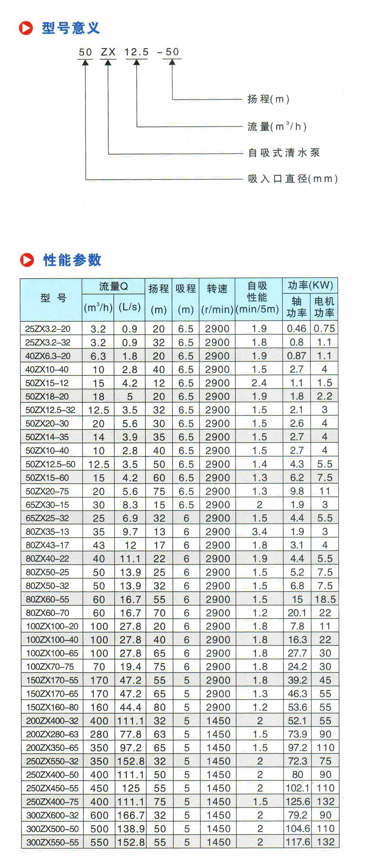 水泵參數說明